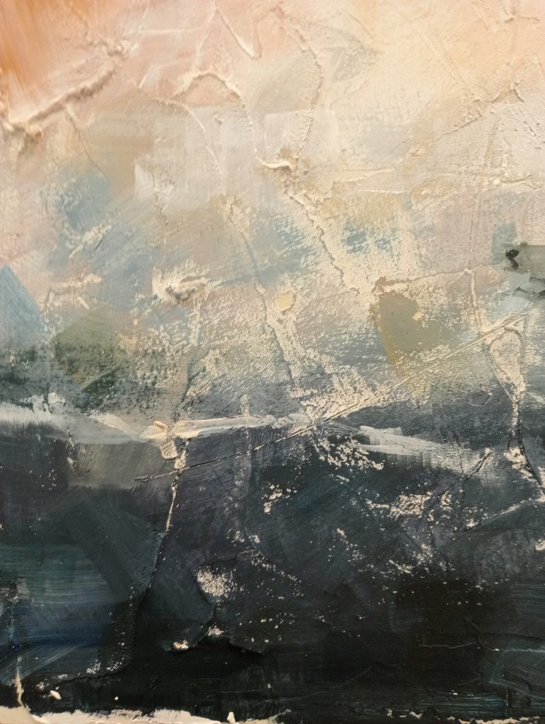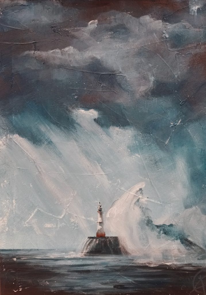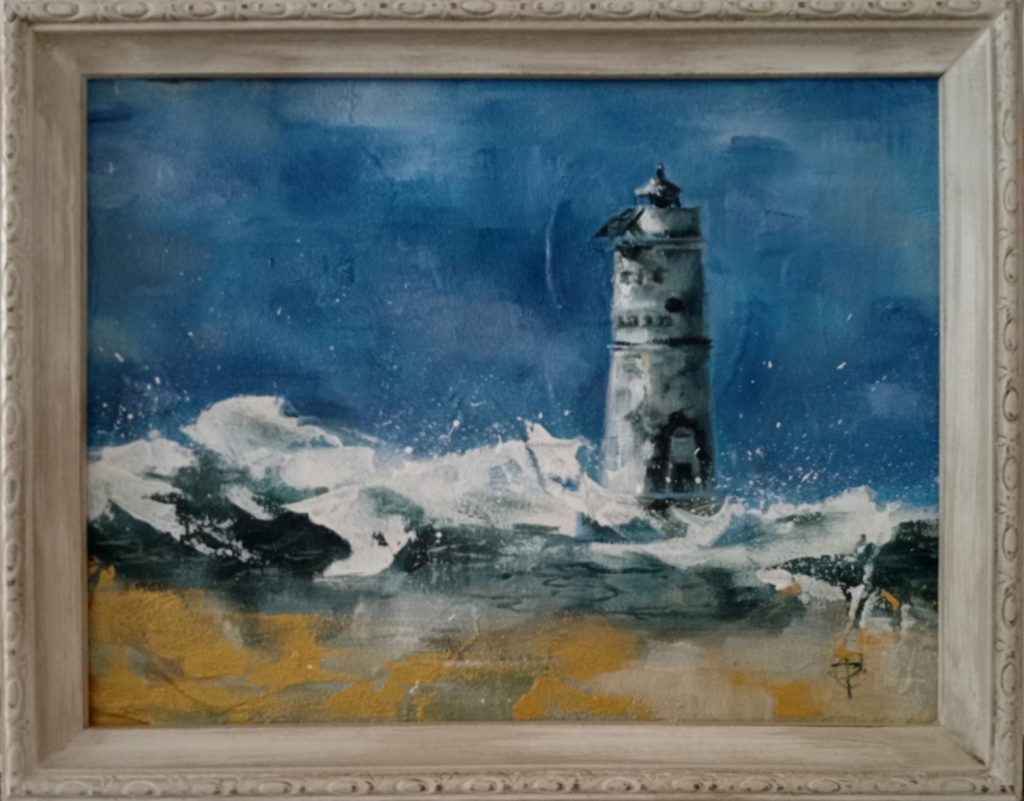In Into the storm è rappresentata una tempesta con un faro che è un riferimento alla forza della natura. Nei nudi ad esempio i corpi paiono essere in posa per essere immortalati in un tuffo nel passato che evoca anche un riferimento evidente al chiaroscuro. La luce che pare scendere dall’alto e colpisce i soggetti è prettamente simbolica, come quella salvifica divina che arriva anche ai semplici. Un rimando dunque ad un periodo lontano e quasi cristallizzato nella mente, risolto come un viatico interpretativo da riverberare, ricordo da non dimenticare ed evocazione di un incanto improvviso”.