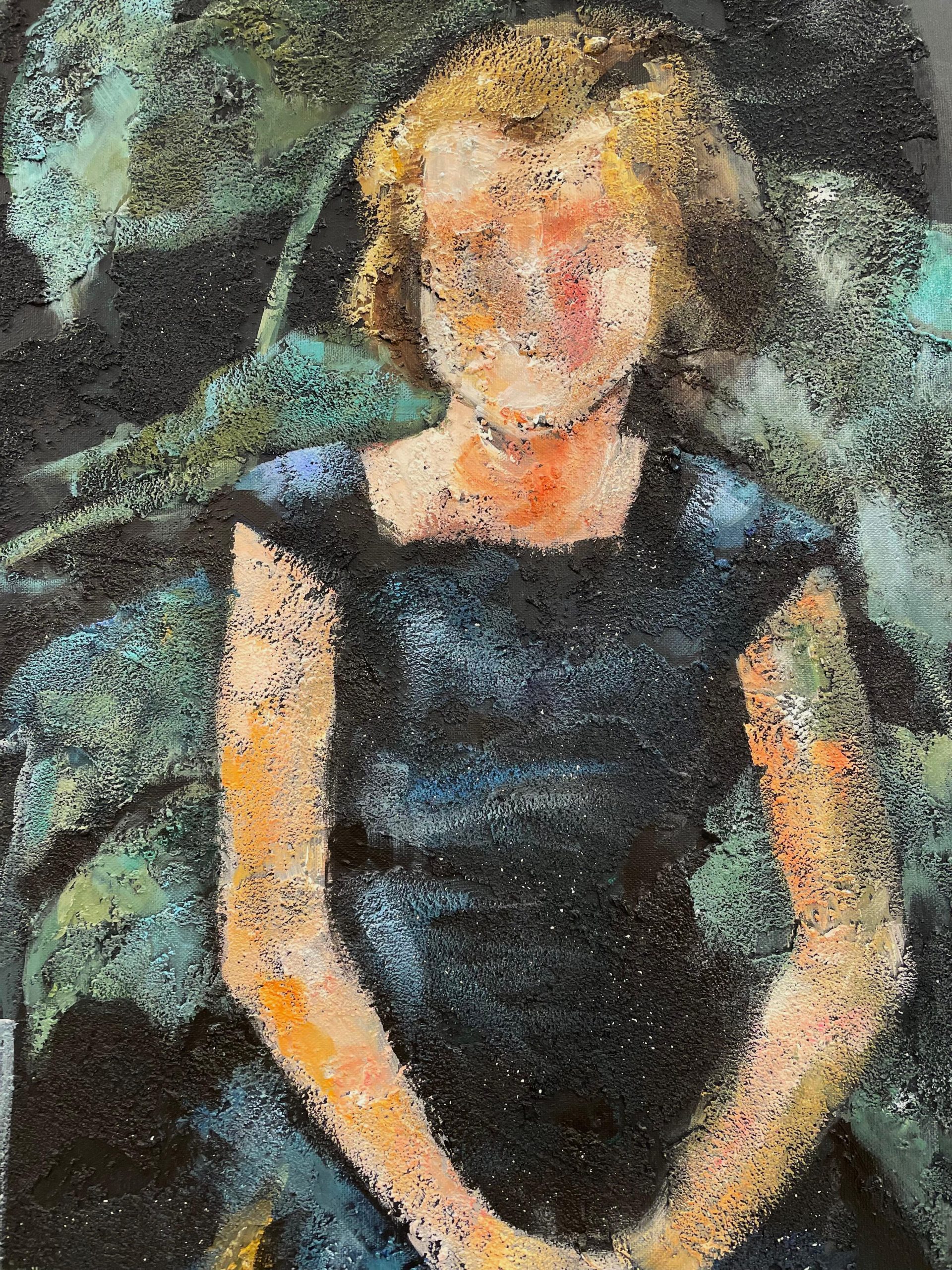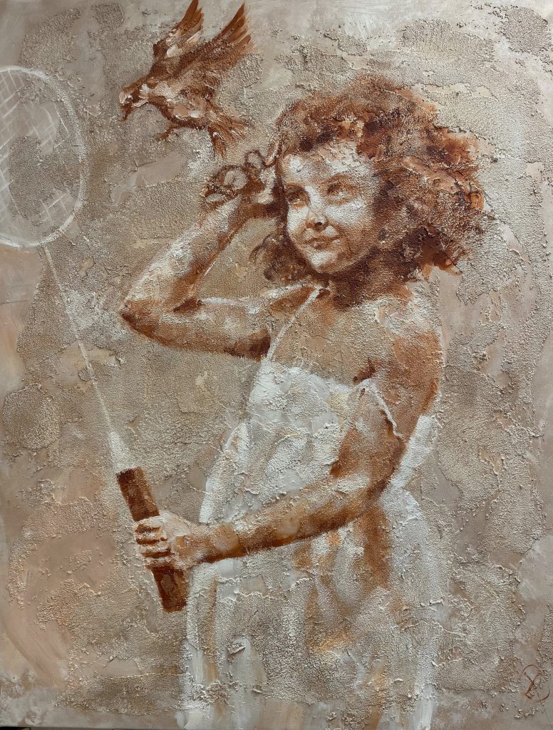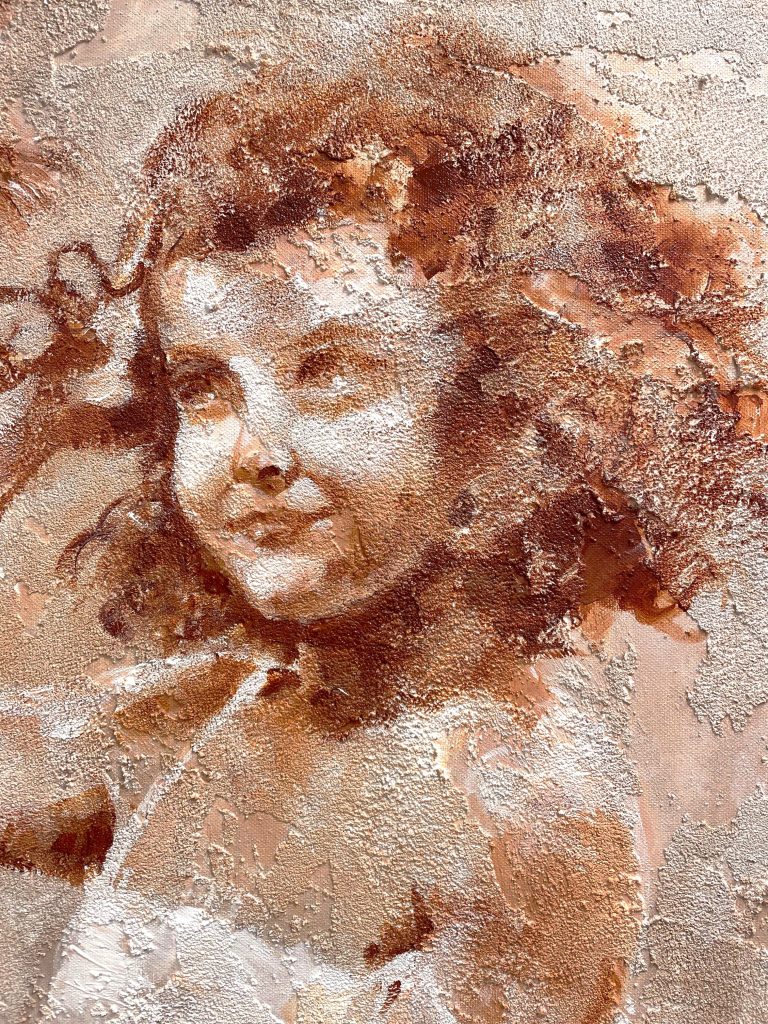 Il linguaggio pittorico è caratterizzato da una grande delicatezza e da una profonda sensibilità. La sua tavolozza, ricca di tonalità pastello e di sfumature tenui, crea atmosfere intime e sospese. I suoi volti, spesso rappresentati in primo piano, sono come finestre aperte sull’anima, rivelando le emozioni più profonde e recondite. L’artista, con la sua maestria tecnica e la sua capacità di osservazione, è in grado di catturare l’essenza della persona, andando oltre l’apparenza fisica per svelarne la complessità interiore. Le sue opere, cariche di poesia e di lirismo, invitano lo spettatore a un viaggio introspettivo, alla scoperta di sé e degli altri”.